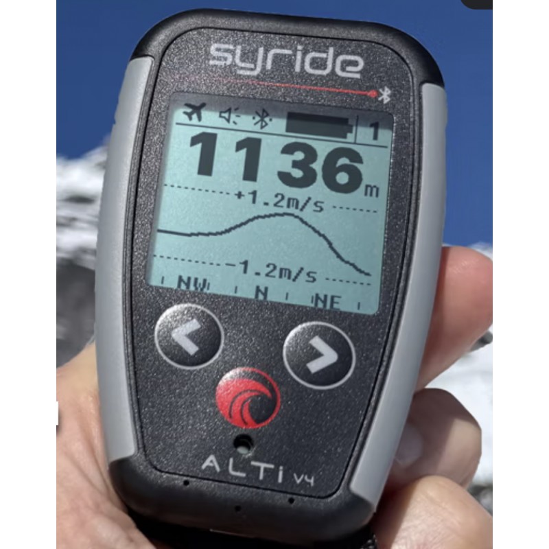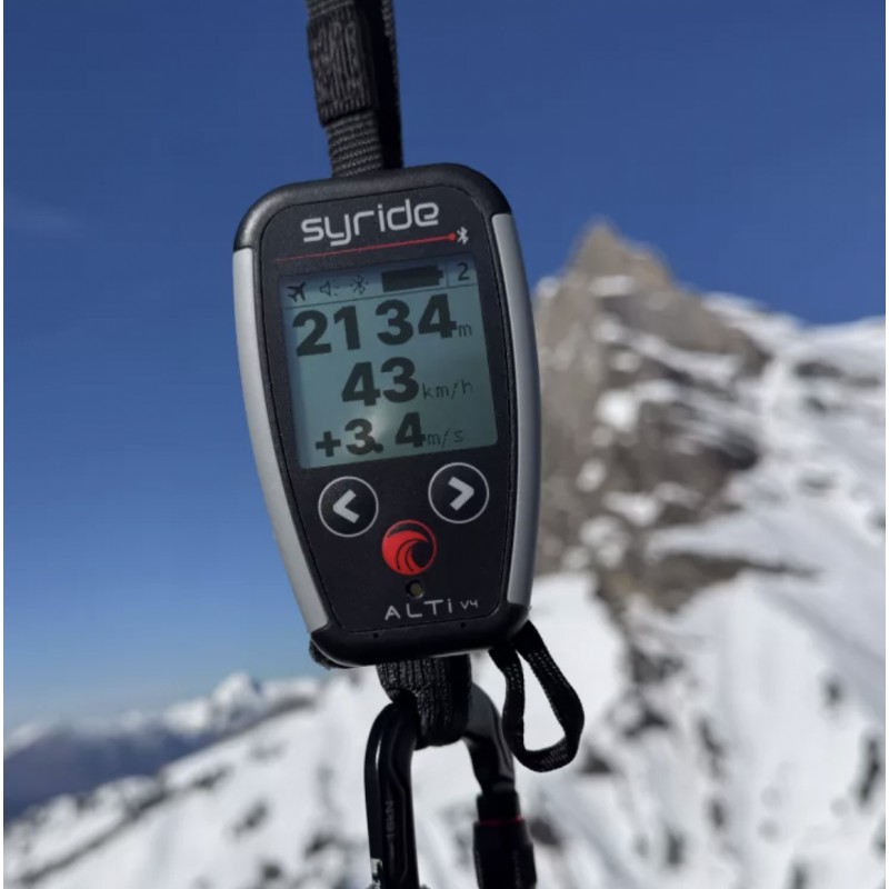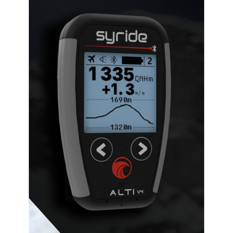 Connected to the Syride Link app, the Alti V4 can display GPS information from your phone, such as ground speed, GPS altitude, or coordinates, combining barometric accuracy with GPS data from your phone.