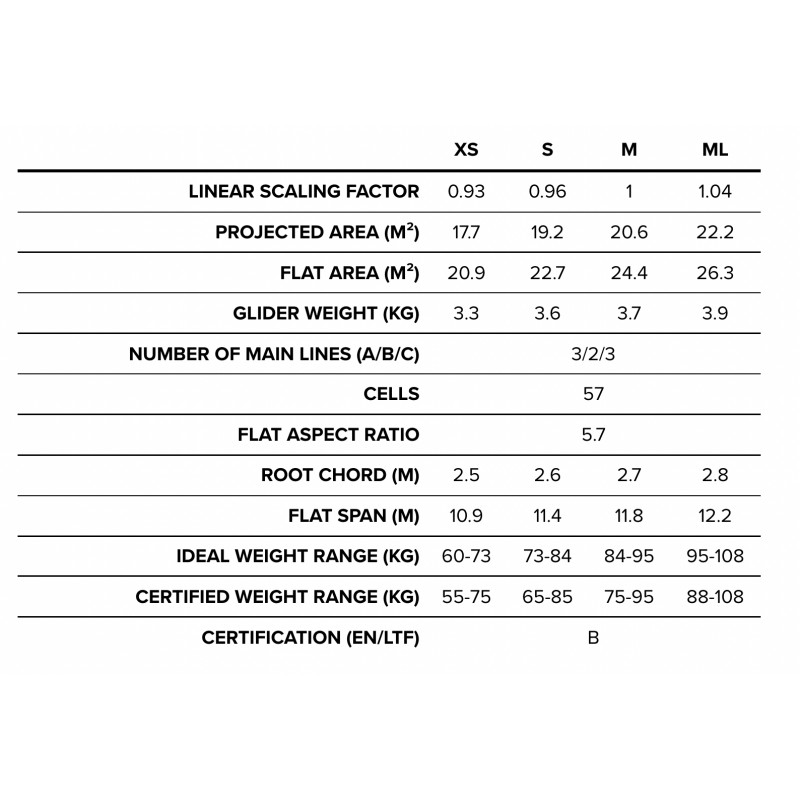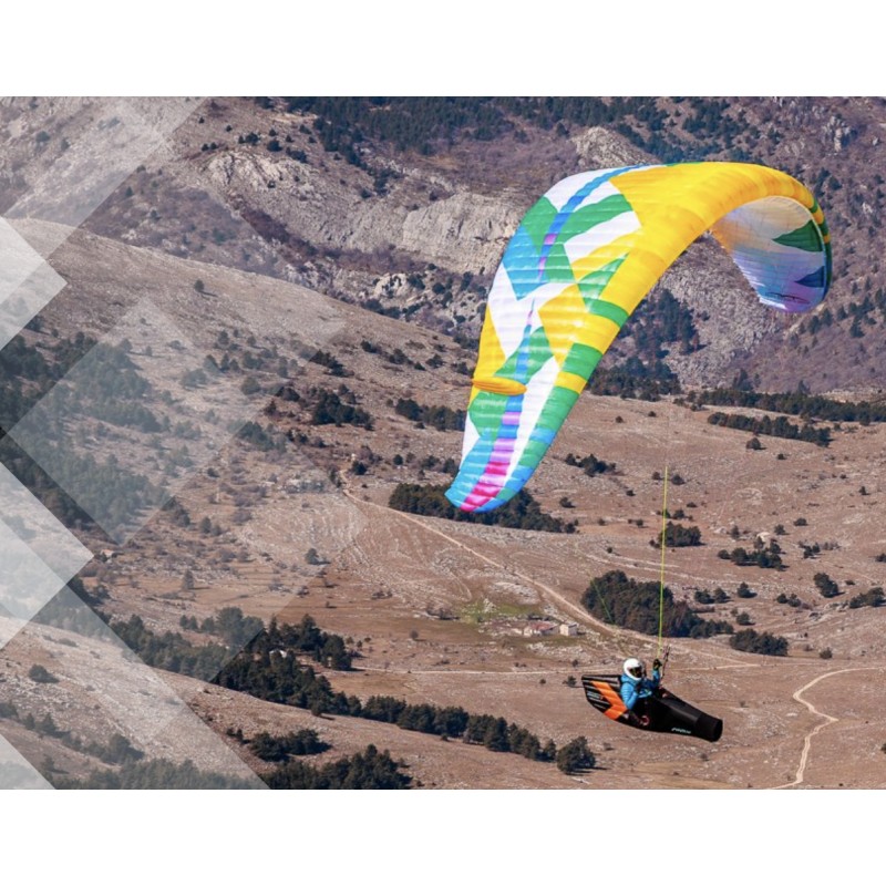 It is the perfect partner for vol-biv: light to carry with the performance to fly far, yet safe and easy to fly. The light sail rises easily to launch, and its super-safe stall behaviour makes it perfect for top-landing in the mountains.